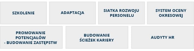 Przykładowe procesy, narzędzia i procedury ułatwiające rozwój personelu w ramach zarządzania kompetencjami w organizacji, których obsługę Państwu oferujemy: